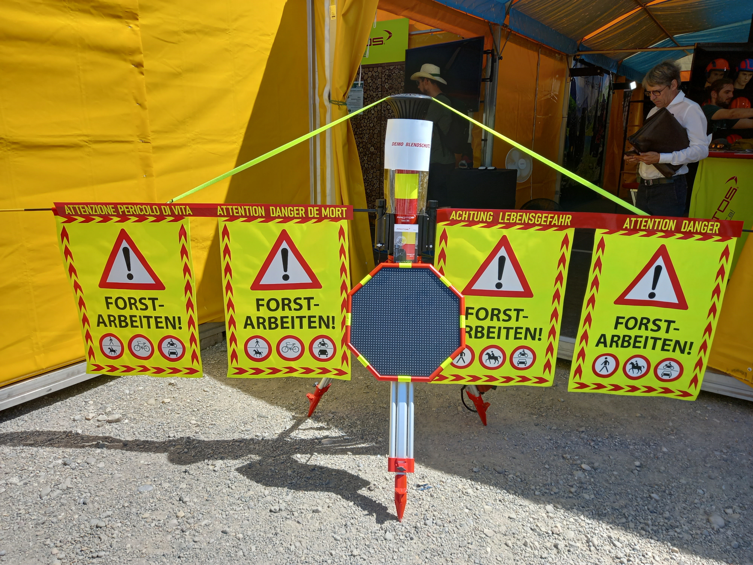 Mit der Straßensperre "PROTOS® Barrier" zeigt die PROTOS GmbH aus Koblach in Österreich einen neuen Weg, Arbeitsstellen künftig effektiver abzusichern (Abbildung 7). Auf einem Dreibeinstativ befindet sich eine stoppschildähnliche Warntafel. Dieses "LED-Panel" zeigt individuelle Texte und somit verschiedene Warnungen an.