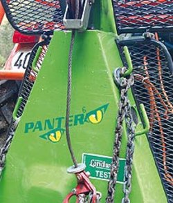 Auch der grüne Panter benötigte vier Durchgänge, um diesen Härtetest zu bestehen. Aufgrund einer rutschenden Kupplung wurde unter Anweisung des Herstellers der Systemdruck um 10 bar erhöht. Nachdem sich die Seiltrommel verformte, wurde der erste Versuch abgebrochen. Wie auch andere Hersteller hat die Mürztaler Landtechnik die Konstruktion der Seiltrommel überarbeitet. Schließlich hat man sich von der Gusstrommel verabschiedet und sich für eine Schweißkonstruktion entschieden. Diese hat den Test anstandslos bestanden.