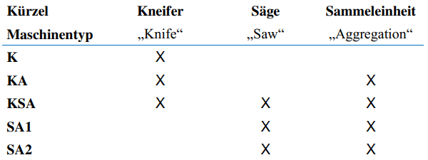 Tab. 1: Einteilung der verwendeten Maschinentypen nach Fälltechnik.