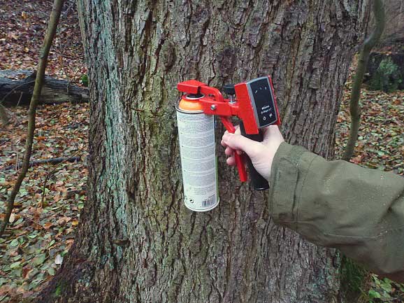 - In der Funktion als digitales Zählwerk kann im Anschluss an das Auszeichnen zur Vorbereitung der Holzernte die Anzahl der zu entnehmenden Bäume abgefragt werden.
