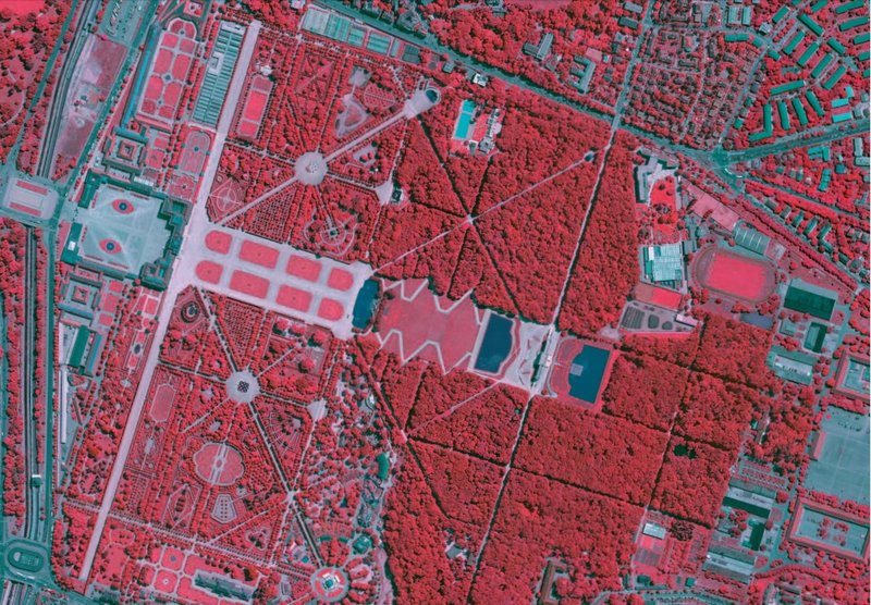 Ornamentales Schönbrunn aus der Luft aus betrachtet: Infrarot Orthofoto mit einer Bodenauflösung von 20 Zentimetern.
