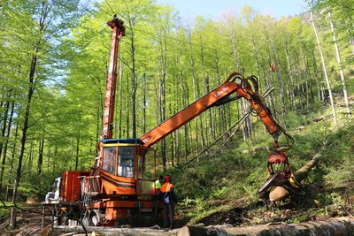 Um Waldbesitzern für die Auswahl geeigneter Verfahren ein Hilfsmittel an die Hand zu geben, wurden im Rahmen einer Literaturstudie unter Einbeziehung von Erfahrungswerten aus der Praxis der Maschinenbetriebe gebräuchliche Ernte- und Bringungstechniken für das Hochgebirge sowie Neuerungen auf diesem Gebiet zusammengetragen und im LWF-Bericht Nr. 36 beschrieben. Die Studie umfasst die Analyse von Veröffentlichungen in einschlägigen Fachzeitschriften, Dissertationen, wissenschaftlichen Arbeiten, Merkblättern, Internetbeiträgen, Maschinendatenblättern sowie technischen Unterlagen von Herstellern. Zusätzlich wurden Leistungs- und Kostenwerte mit praktischen Erfahrungen aus zahlreichen Einsätzen des Seilstützpunktes Laubau ergänzt und verprobt.