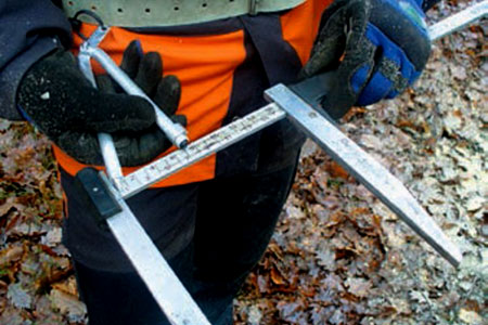 Abb. 1. Der hydraulische Fällheber arbeitet nach dem Prinzip des Wagenhebers. Für Bäume mit weniger als 45 cm Durchmesser ist das Gerät nicht geeignet.