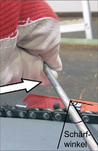 Der Halbmeißelzahn wird parallel zum Zahndach gefeilt. Fotos (4): Laura und Franz Plasser