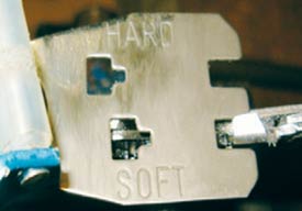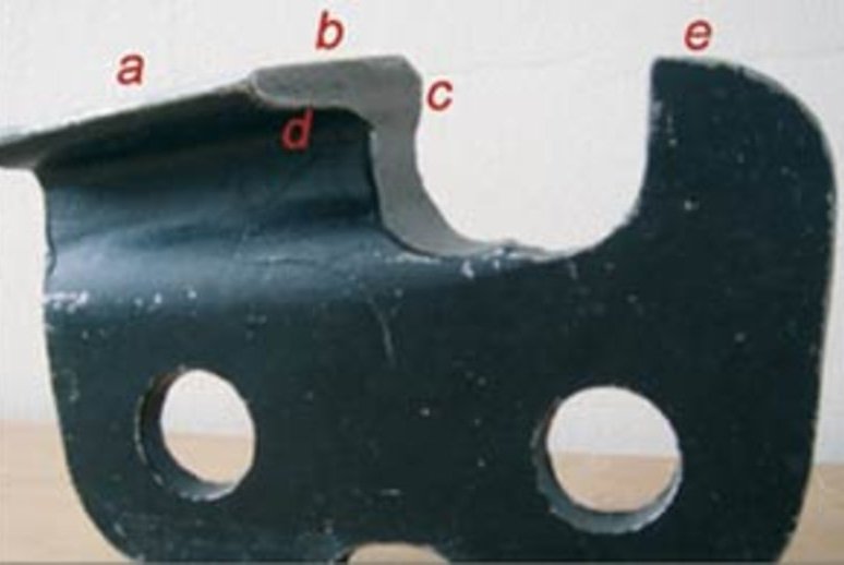 Die Tiefenbegrenzerlehre stellt eine Möglichkeit dar, um den Tiefenbegrenzer exakt abzustimmen. Werden die Tiefenbegrenzer waagrecht abgefeilt, sind sie gegebenenfalls abzurunden oder abzuschrägen. Ihre Form im Neuzustand sollte beibehalten werden.