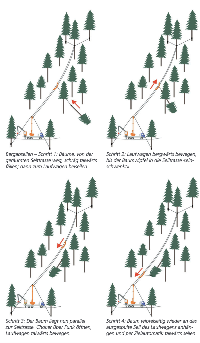 Üblicherweise wurde in Österreich die Aufschliessung der Bergwälder so angelegt, dass die oberste Etage der Erschliessung für die Bergabseilung im Baumverfahren mit Mastseilgeräten zugänglich ist und hiebsreife Bestände dort optimal genutzt werden können. Inzwischen stehen in diesen Zonen jedoch selektive Nutzungen und spezielle Durchforstungen an, bei denen die herkömmlichen Verfahren weder effizient noch schadarm sind.