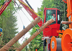Das Abzopfen der längeren Bäume verringert den Nährstoffentzug auf der Fläche und erleichtert die Arbeit beim Anhängen der Lastbündel im Kronenbereich.