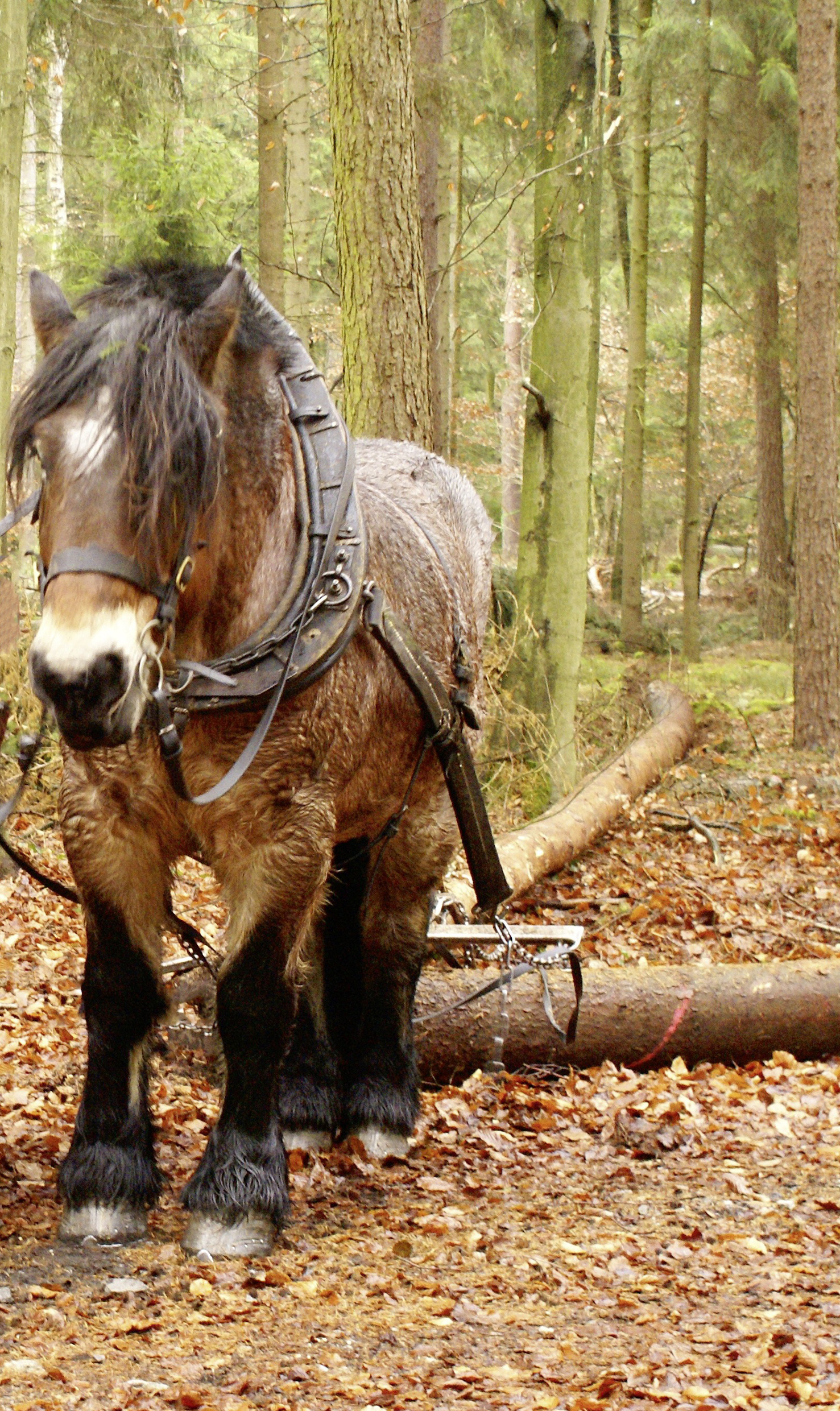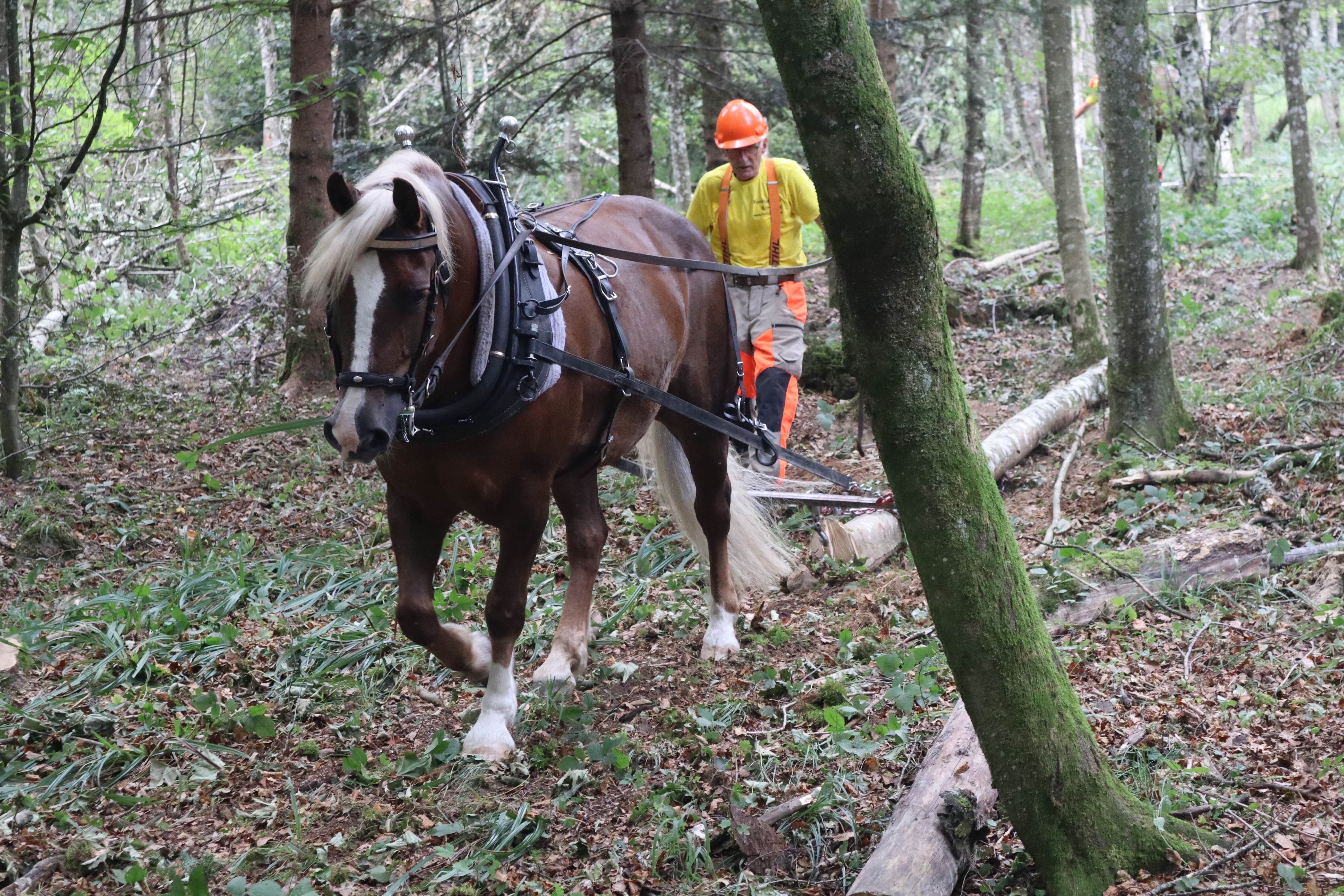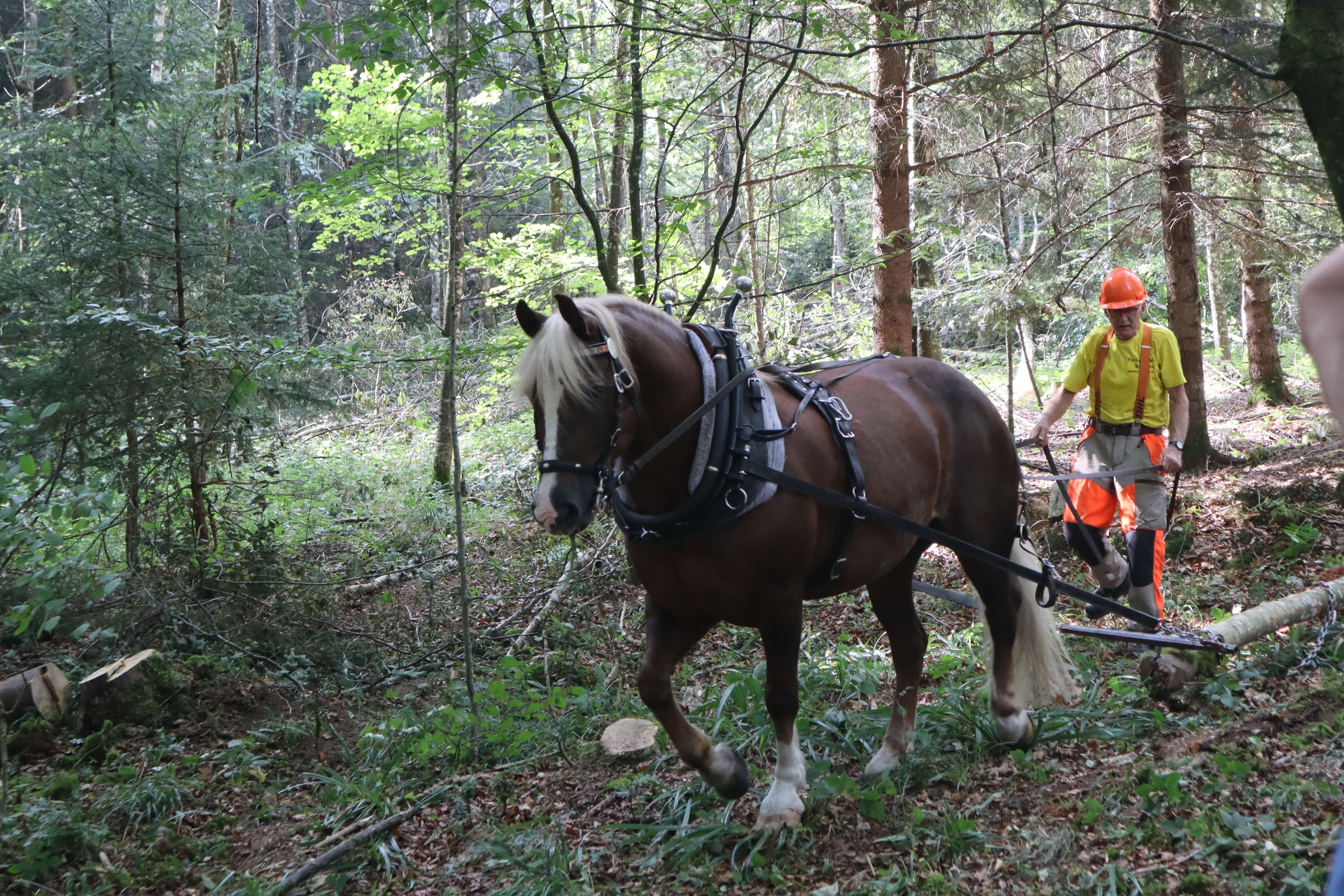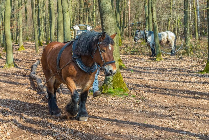 Auch wenn Pferde es könnten, werden heute schwere Lasten und weite Wege pferdeschonend mit Maschinen erledigt. Aber bei der filigranen Feinarbeit im Bestand können Pferde auf kurzen Strecken jedoch ihre Stärken ausspielen, ohne sich dabei zu verausgaben.