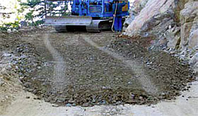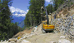 Auftrag: Aus dem Abtrag oder anderweitig zugeführte Erdmassen zur Sicherung der talseitigen Böschung und als Untergrund für die Tragschicht.