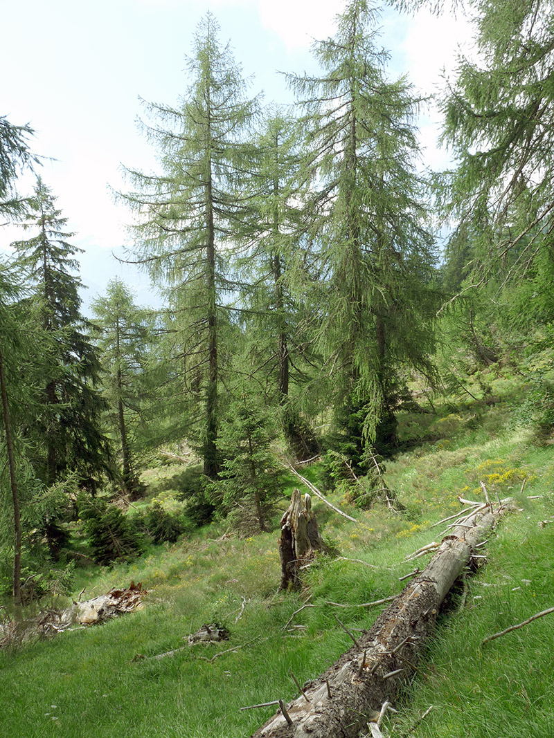 - Die 5 × 5 Rasterpunkte wurden pro Probefläche einer von elf Bodenbedeckungskategorien zugeordnet. Die möglichen Kategorien waren Laubbaum, Nadelbaum, Lärche, Strauch, Kraut/ Grasvegetation, Felsen, Sand/Gestein/Offenerde, befestigte Fläche, Bauobjekt, Gewässer und Gletscher/Firn. Die Zuordnung der 25 Rasterpunkte erfolgte völlig unabhängig davon, ob eine Probefläche zum Wald gehörte oder nicht.