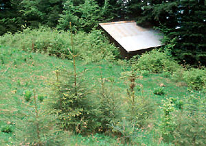 Abb. 5. Ein "Heugaden" verschwindet im Wald.