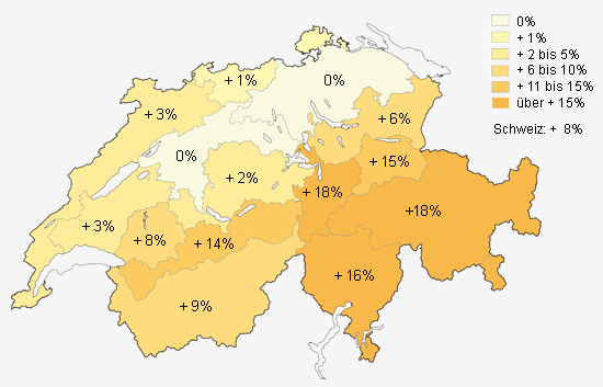 Weltweit geht der Wald deshalb zurück. Nicht so in der Schweiz: Hier hat er in den vergangenen 150 Jahren um 30 bis 50 Prozent zugenommen (vgl. Abb. 2). Auch zur heutigen Entwicklung liegen unterschiedliche Zahlen vor: Gemäss dem Landesforstinventar hat die Waldfläche zwischen 1983/85 und 1993/95 um 47'612 Hektaren (476 km2) zugenommen. Die Arealstatistik weist zwischen 1979/85 und 1992/95 eine Zunahme um 18'385 Hektaren (183 km2) aus.