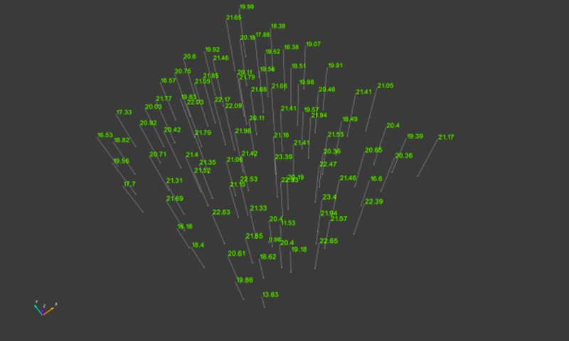 Im nachfolgenden Arbeitsschritt werden dendrometrische Kenngrößen auf Einzelbaumebene für die segmentierten Baumobjekte ermittelt. Hierfür bestimmt man für jeden Baum seinen tiefsten Punkt im Hinblick auf seine Z-Koordinate. Dies erfolgt über den Menüleisteneintrag "Trees – Position lowest points" oder "Trees – Position RHT" (Randomized Hough Transform).