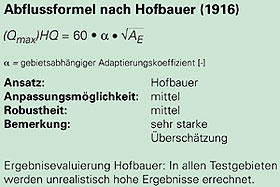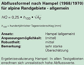 - Welcher Art ist die Gefährdung? Im Wildbachbereich wird das Abflussgeschehen durch den Geschiebetrieb oft entscheidend beeinflusst. Die vorgestellten Berechnungsverfahren geben aber nur die Abflussspitzen von (relativ) ungestörten Abflüssen nach extremen Niederschlägen wider. Daher eignen sich Hochwasserformeln nicht zur Abschätzung stark geschiebebelasteter, murartiger Ereignisse.