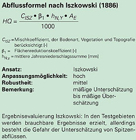 Ob ein Ansatz geeignet ist, hängt davon ab, auf welcher Datenbasis er entwickelt wurde. So sind Ansätze, die in Flusseinzugsgebieten erarbeitet wurden, für die meist kleinen, steilen Einzugsgebiete von Wildbächen nur sehr beschränkt verwendbar. Entscheidend ist, ob die benötigten Gebietsinformationen in ausreichender Qualität zu Verfügung stehen – eine Voraussetzung für den Einsatz anspruchsvollerer Ansätze.