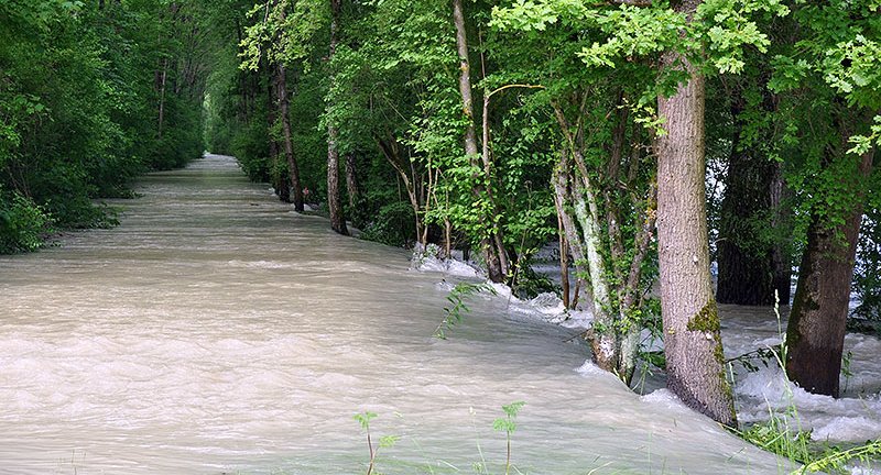 Hochwasser sind natürliche Ereignisse. Die Fließgewässer treten über die Ufer und überschwemmen im Extremfall große Flächen. Technische Maßnahmen oder natürlicher Wasserrückhalt können Schäden meist minimieren, aber nicht immer verhindern. Wichtig zum Schutz der Wälder, des Lebensraums Aue sowie der Waldbesitzer und der Unterlieger ist eine an Überschwemmungen angepasste Waldbewirtschaftung. Sie ist eine naturnahe Form der Landnutzung in hochwassergefährdeten Gebieten.
