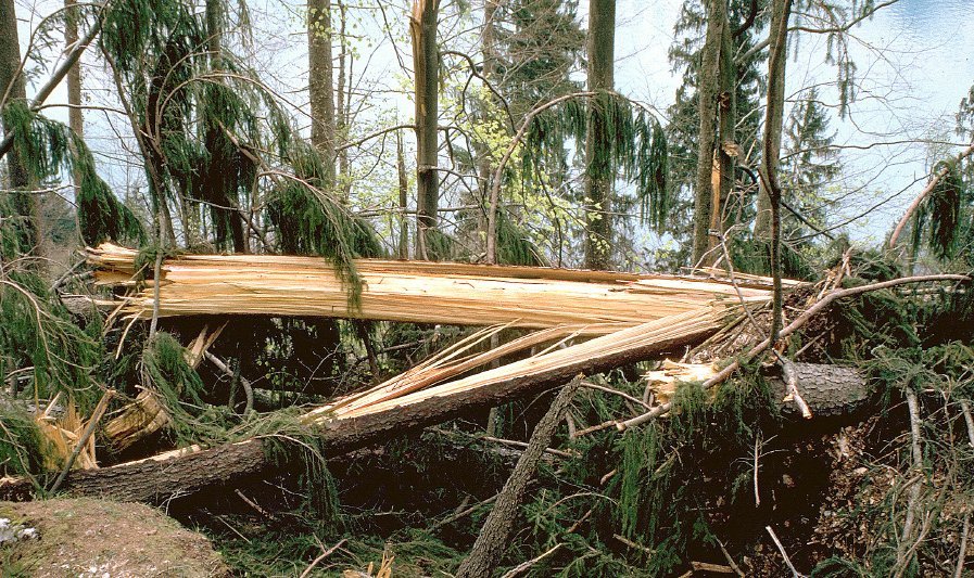 Unmittelbar nach einer Wind- oder Borkenkäferstörung behielten 46 % der Wälder ihre Schutzfunktion bei. Dies spiegelt die geringen Flächengrößen und die mittleren Stärken von natürlichen Störungen in den Alpen wider. Überlebende Bäume sowie liegendes und stehendes Totholz können die Schutzwirkung in den ersten Jahren nach Störung vielerorts erhalten. Gleichzeitig erleichtert Totholz die Walderholung nach Störung, da es Schneebewegungen reduziert und gute mikroklimatische Bedingungen für die Ansiedelung von Keimlingen bietet. Daher sollte die Räumung nach Störungen in Gebirgswäldern sorgfältig abgewogen und – wo möglich – vermieden werden.