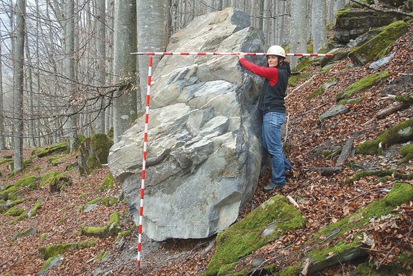Im früheren Projekt "Baumstabilität" haben wir den Einfluss von Steinschlag auf Einzelbäume umfassend untersucht. Ein Resultat dieses Projekts war eine Formel, mit der bestimmt werden kann, ob ein Baum mit einem bestimmten Brusthöhendurchmesser und einer entsprechenden Höhe bei einem Steinschlag bricht oder nicht. Hierbei spielt es eine Rolle, in welcher Höhe der Stein einschlägt, wie schnell und wie schwer er ist und ob er den Baum frontal trifft oder vielleicht auch nur streift.