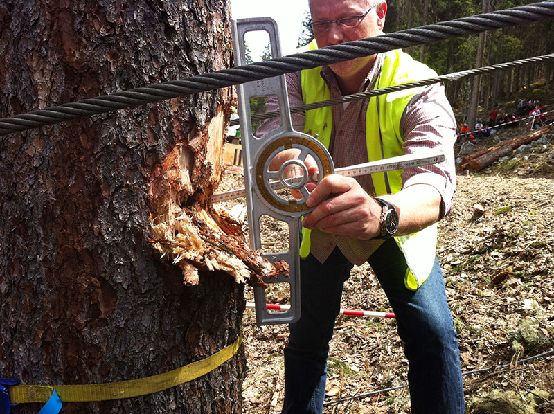 Abb. 6 - Vermessung der Kerbe im Stamm. Foto: WSL