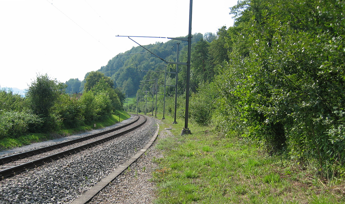 Abb. 1 - Die Strecke Luzern–Olten ist eine Hauptlinie. Die Niederhaltezone entwickelt sich zu einem vielfältigen Waldrand. Foto: SBB