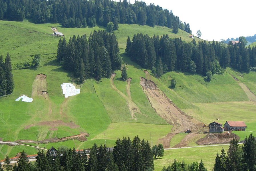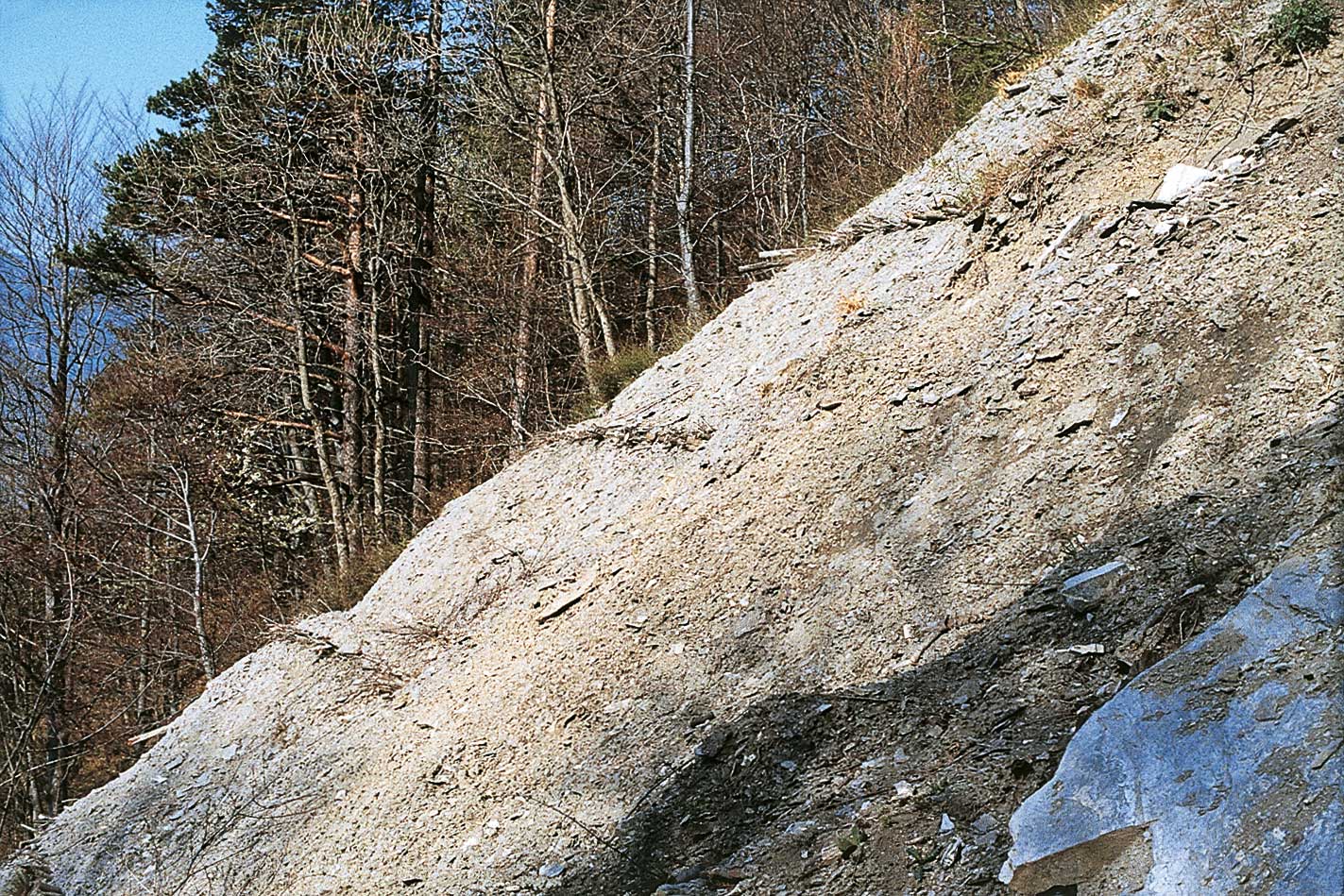 Früher hätten die Ingenieure bei der Stabilisierung solch "angeschlagener" Hänge auf Beton und Stahl gesetzt. Wer einen Hang so sichern will, muss ihn fast vollständig verbauen, um den notwendigen flächenhaften Schutz zu erreichen. Entsprechend massiv ist der Eingriff in die Natur und ins Landschaftsbild, entsprechend hoch sind die Kosten.