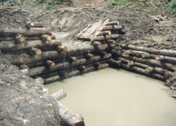 Erste Biegebruchversuche an einer rund 60 Jahre alten Sperre ergaben relativ hohe Bruchwerte der verbauten Rundhölzer. Das Ziel einer grösser angelegten Untersuchung war, Anhaltspunkte über den Tragwiderstand von Rundhölzern zu erhalten, welche vor mehreren Jahrzehnten verbaut wurden.