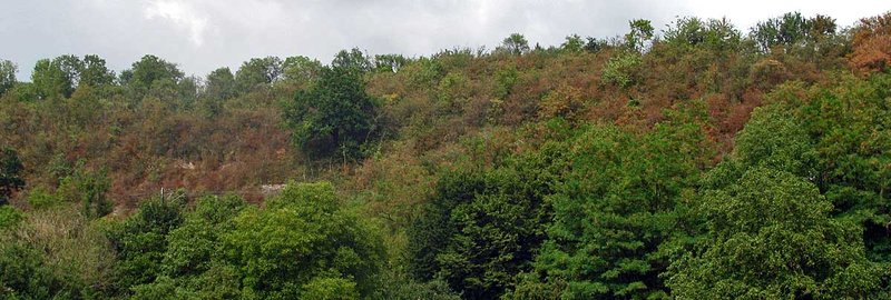 Abb. 2: Erste Schäden durch Trockenstress nach dem heißen Sommer 2015 traten, wie hier im Jagsttal, oftmals zunächst auf flachgründigen Hängen auf.