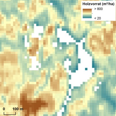 Für die nachhaltige Waldbewirtschaftung sind Daten über die räumliche Verteilung von Holzvorräten und der Biomasse eine wichtige Basis. Besonders bei gehäuften Kalamitäten durch Sturm und Insekten (z. B. Borkenkäfer) stellen sie eine wertvolle Grundlage für die Planung von Maßnahmen der Holzernte, der Verjüngung, des Wald-, Natur- und Klimaschutzes dar. Um solche Daten abzuleiten, wurde ein Verfahren entwickelt, das basierend auf normalisierten digitalen Oberflächenmodellen (nDOM), Baumartenkarten und Standortsdaten die flächendeckende Verteilung von Holz- und Biomassevorräten modelliert und in Karten abbildet.