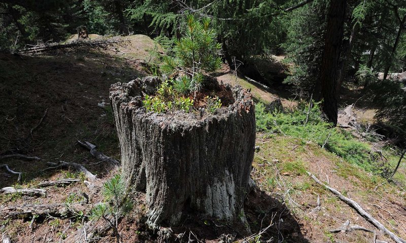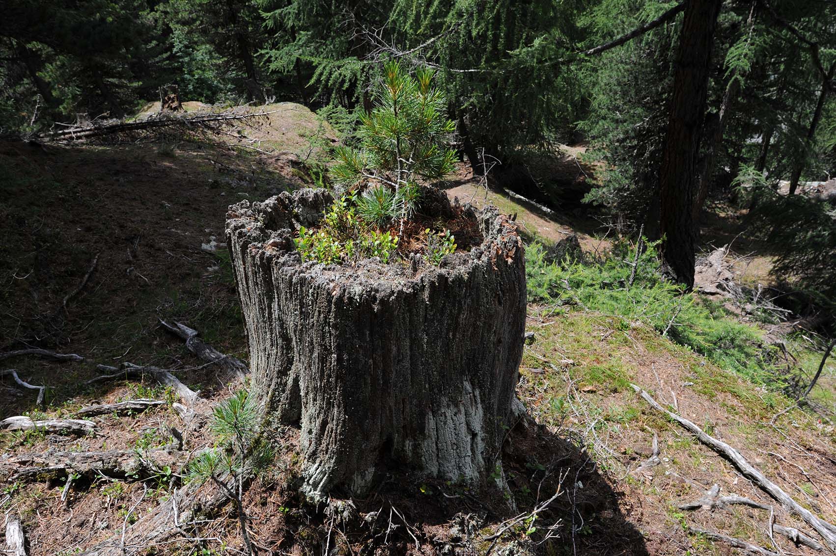Das war jedoch nicht immer so. Noch Anfang des letzten Jahrhunderts nutzten die Menschen den Aletschwald intensiv. Sie sammelten Brennholz und Heidelbeeren, liessen Rinder und Ziegen darin weiden oder fällten Bäume für den Eigenbedarf oder den Verkauf. Die Einzigartigkeit des Waldes drohte verloren zu gehen. 1933 pachtete die Naturschutzorganisation Pro Natura das Gebiet und stellte es zusammen mit dem Kanton Wallis unter Schutz, um den Wald langfristig zu erhalten und eine natürliche Waldentwicklung zu ermöglichen.