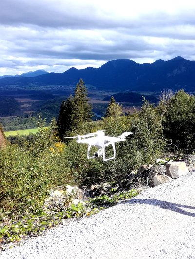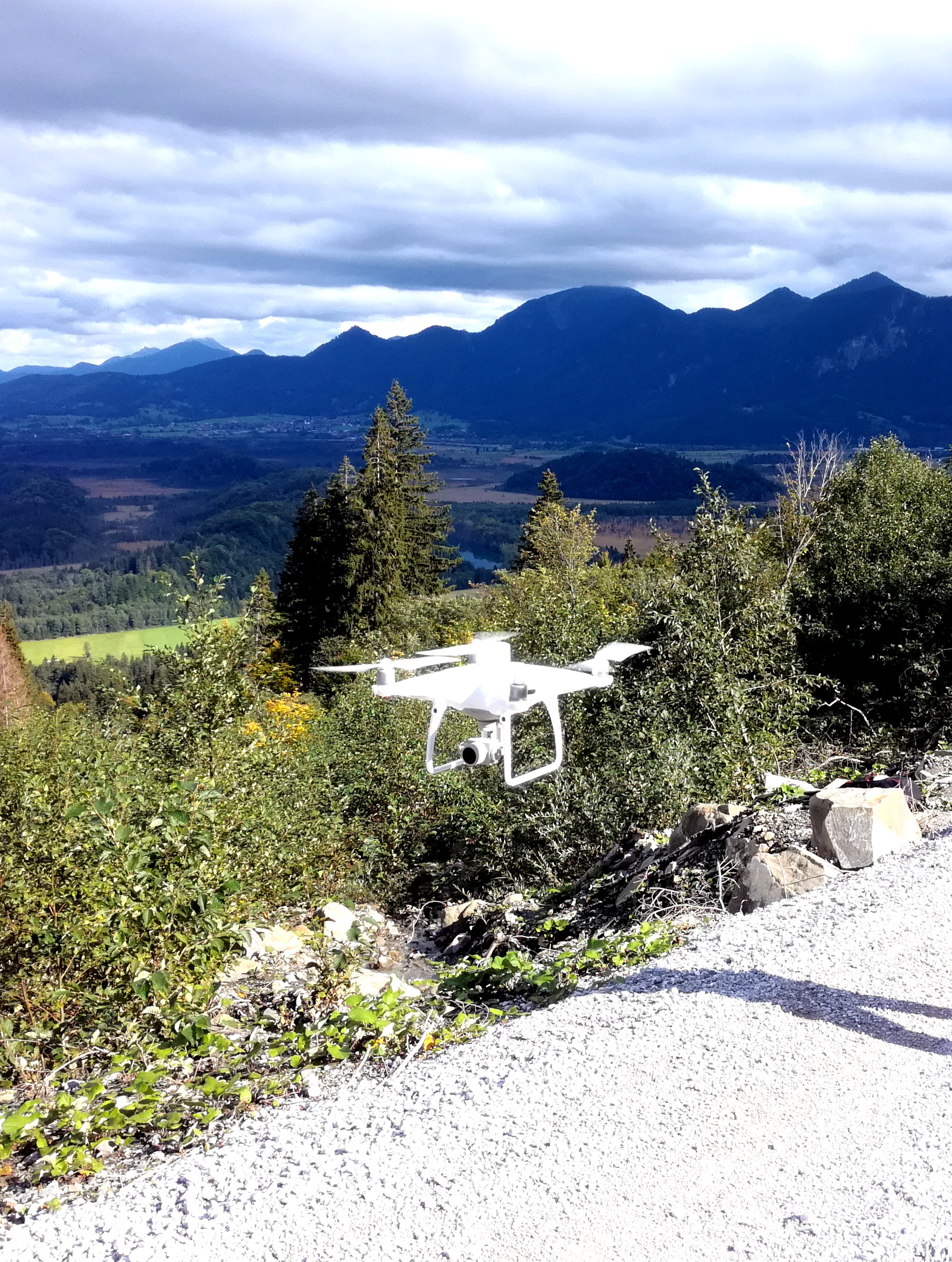 Das Schutzwaldmanagement möchten wir in Zukunft besonders in zwei Bereichen durch Drohnenfernerkundung unterstützen: Zum einen, um Handlungsbedarf in der Schutzwaldpflege möglichst frühzeitig zu erkennen. Zum anderen, um die Erfolgskontrolle und das Monitoring in der Schutzwaldsanierung zu erleichtern und Maßnahmen noch effizienter steuern zu können. Drohnengestützte Fernerkundung ist im Vergleich zum Flugzeug kostengünstig und flexibel, sie liefert hochauflösende Daten und hat dadurch für die Erkundung und für das Monitoring insbesondere von Schutzwäldern großes Potenzial. Gerade im alpinen, teils schwer zugänglichen Gelände können die Vorzüge des UAV-Einsatzes (Unmanned Aerial Vehicle) besonders zum Tragen kommen. Richtig angewendet ist die Drohnenfernerkundung ein äußerst störungsarmes Verfahren, von dem sensible Tierarten profitieren können. Der alpine Lebensraum und seine morphologischen Besonderheiten erfordern allerdings eine besonders angepasste Planung für alle Befliegungen: Berücksichtigung aller Vorinformationen zu Flugsicherheit und Naturschutz, GIS-gestützte Vorauswahl zentraler Startplätze mit guter Sicht, an das steile und vielgestaltige Gelände und die jeweiligen Bestockungsverhältnisse angepasste Flugsteuerung, um nur einige zu nennen.