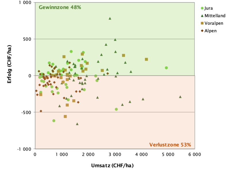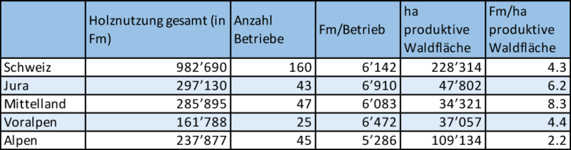 Durch eine regionale Auswertung nach den Forstzonen Jura, Mittelland, Voralpen und Alpen wird den unterschiedlichen Wuchs- und Holzproduktionsbedingungen Rechnung getragen.