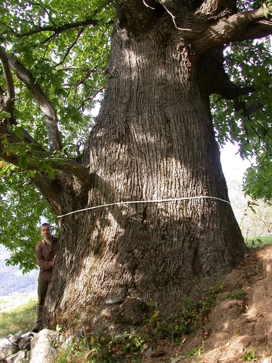 Die Verteilung der Kastanien, die einen Umfang von mehr als 7 Metern aufweisen, ist keineswegs zufällig. Die auf der Alpensüdseite durchgeführten Untersuchungen zeigen, dass 90 Prozent dieser kolossalen Bäume in der Nähe von landwirtschaftlichen Gebäuden stehen. Dabei handelt es sich zumeist um Maiensässen, die sich auf einer Höhe von 700 bis 970 Metern befinden.