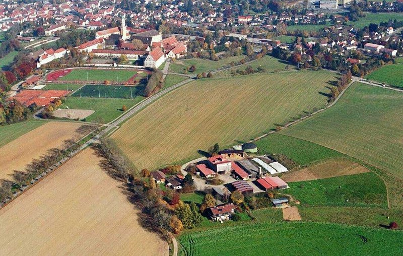 Abb. 1: Hofgut Holland (im Vordergrund) vor dem ehem. Kloster Ochsenhausen in Oberschwaben in Baden-Württemberg.