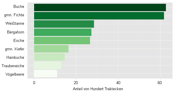 Abb. 3: Frequenz der häufigsten Baumarten an den Traktecken der BWI3.