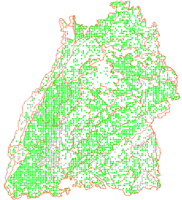 Abb. 4: BWI3-Vorkommen der Buche (Fagus sylvatica) in Baden-Württemberg.