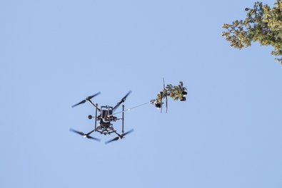 Die Geschwindigkeit der Probenahme mit dem Greifarm hängt stark von der Komplexität der Waldbestände ab. Entscheidend ist die Einsehbarkeit in die Baumkronen, eventuelle Hanglagen, die zu beprobende Baumart selbst und natürlich die Erfahrung des Drohnenpiloten. Es ist wichtig, dass die Äste gut mit dem Greifarm zu packen sind. Knorrige und stark verästelte Zweige lassen sich nur schwer greifen und können die Dauer der Probenahme stark verlängern. Für den Einsatz sind mindestens zwei Personen notwendig: ein Pilot und ein Beobachter. Dies dient einerseits der Sicherheit und andererseits, um die Probebäume optimal anzusteuern.