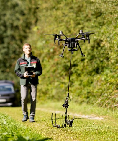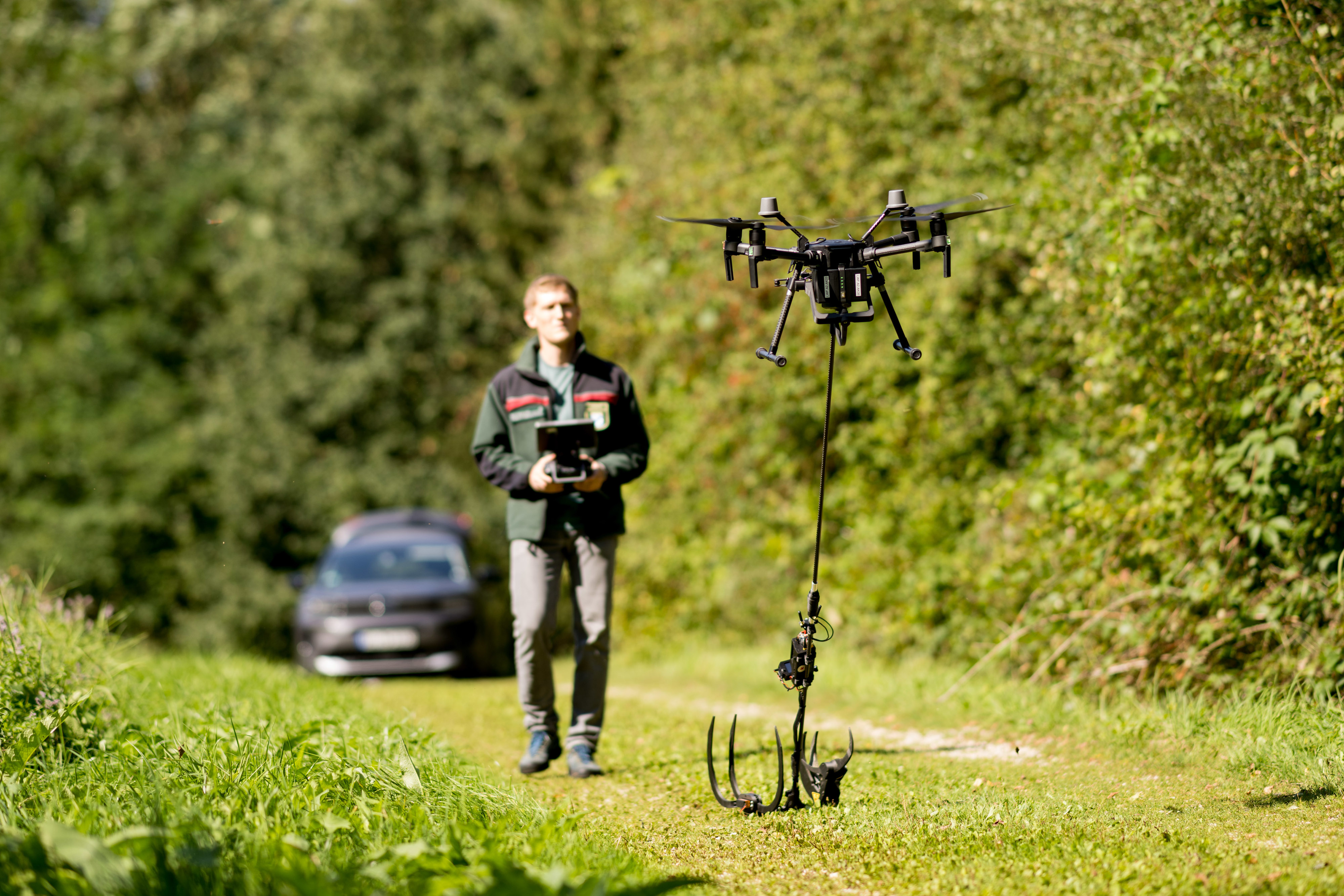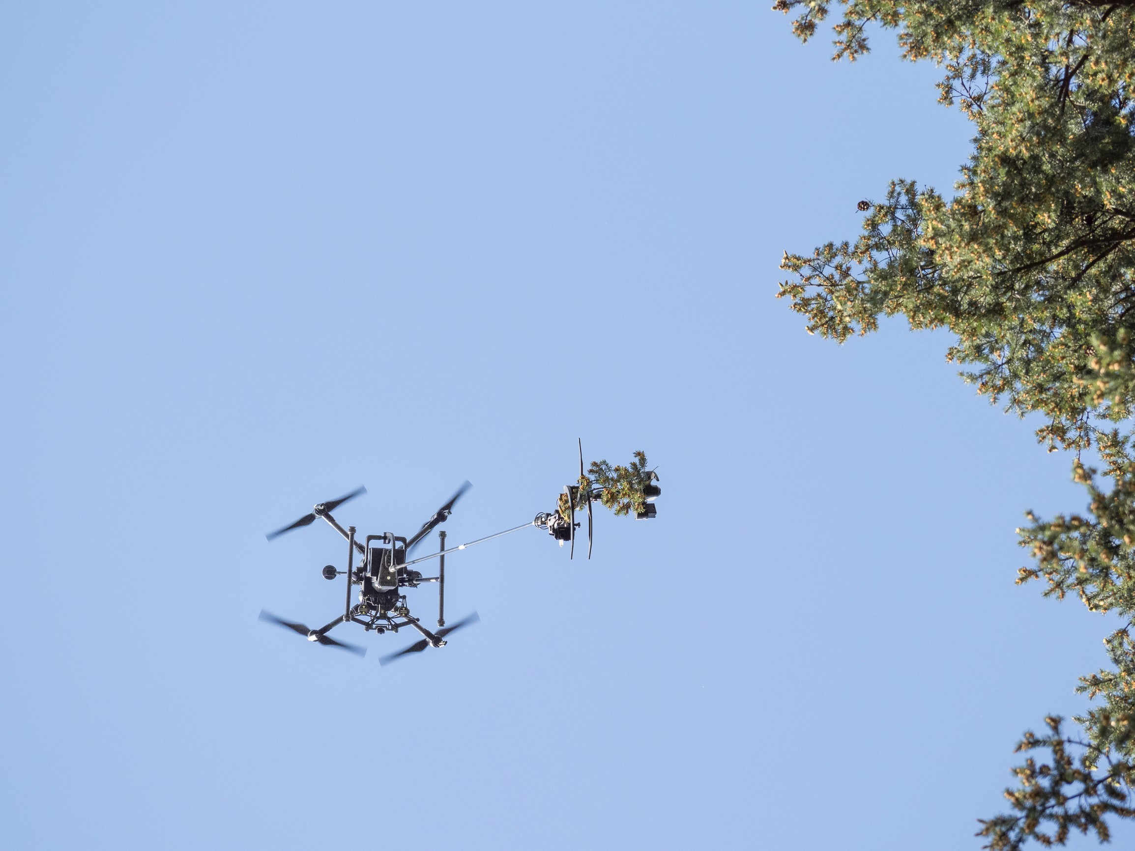 Für den Einsatz des Greifarms wird eine DJI Matrice 210 RTK Drohne inklusive Bodenstation verwendet. Hinzu kommen 14 Drohnen-Akkus. Die Drohne benötigt für den Betrieb zwei Akkus, bei 14 Akkus können daher sieben Flüge von jeweils etwa 15-20 Minuten bewerkstelligt werden. Oberhalb des Greifarms ist eine Kamera angebracht, die den Greifvorgang aufnimmt.