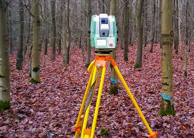 Dauerbeobachtungsflächen der LWF werden seit 2015 ergänzend zu den etablierten Flächenaufnahmen mit dem Tachymeter-Laserscanner-Kombigerät Leica MS 50 (Abb. 1) gescannt. Ziel ist es auch, Flächenneuanlagen im Rahmen von Forschungsprojekten ein- oder mehrmals zu scannen und die Lagekoordinaten der Flächen mit den GNSS (=globales Navigationssatellitensystem) hochgenau zu ermitteln.