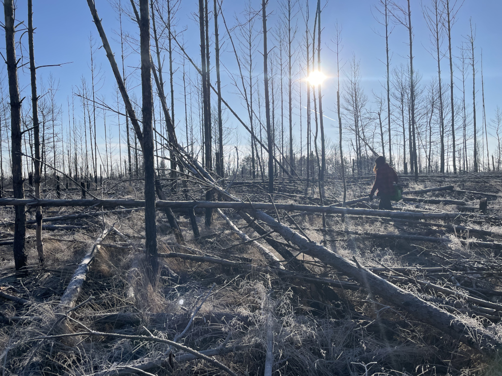 Im Verbundprojekt PYROPHOB werden nach den Großbränden in Südbrandenburg in den Jahren 2018 und 2019 verschiedene forstliche Management-Ansätze verglichen. Dabei sollen Strategien entwickelt werden, um klimawandelresiliente und feuerabweisende Wälder zu etablieren. Die Versuchsflächen decken ein weites Spektrum unterschiedlicher Beräumungsintensität, Bodenbehandlung, Zäunung und Verjüngungsstrategien in verschiedenen Kombinationen ab.