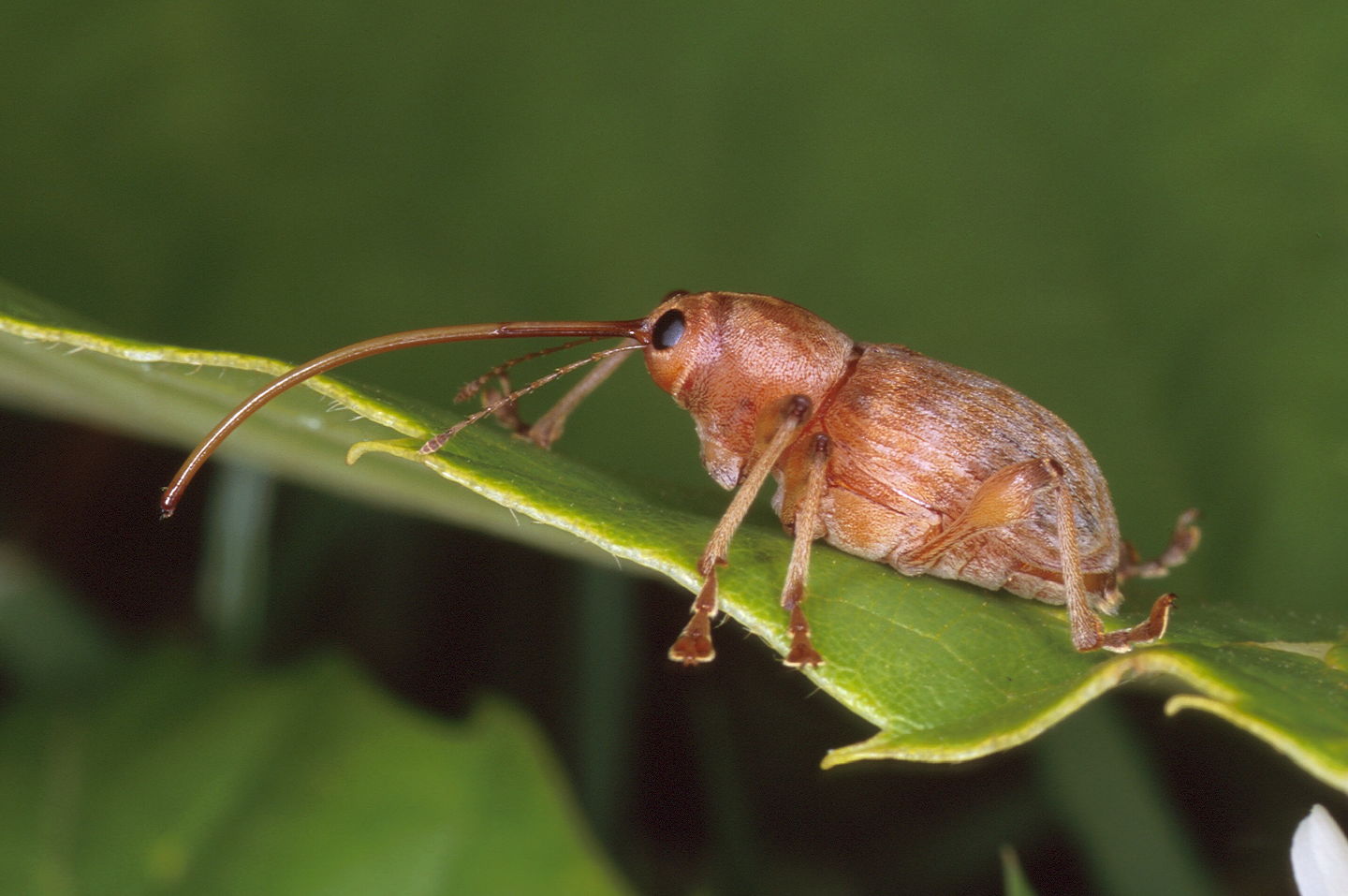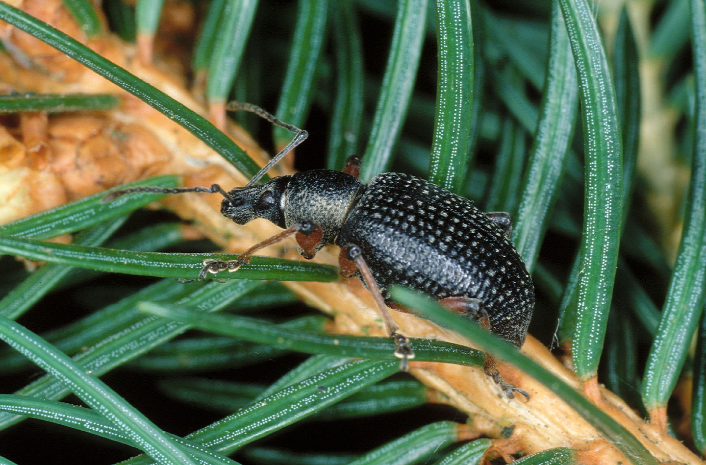 Abb. 1. Der Grosse Braune Rüsselkäfer ist ein häufiger Forstschädling. Seine Larven leben in den Wurzeln oder im Stammfuss junger Kiefern. Foto: Beat Wermelinger (WSL)
