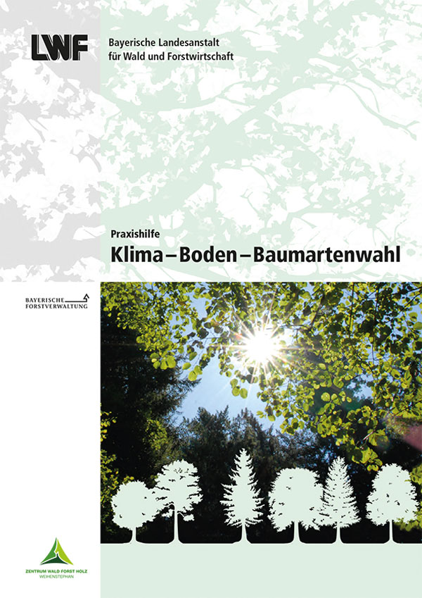 Die Praxishilfen "Klima–Boden–Baumartenwahl" der LWF beschreiben in zwei Bänden jeweils 16 Baumarten mit vierseitigen Steckbriefen. In einem Grundlagenteil werden Methoden und Hintergründe erläutert. Das aktuelle Wissen zu den Themen Verbreitung, Herkunft, Arteigenschaften, Klima, Wasser und Boden, Anbaurisiko, Leistung, Holzverwendung, Waldschutz, Artenvielfalt und Waldbau ist auf den vierseitigen Baumartensteckbriefen so aufbereitet, dass ein Vergleich zwischen den Baumarten leicht möglich ist.