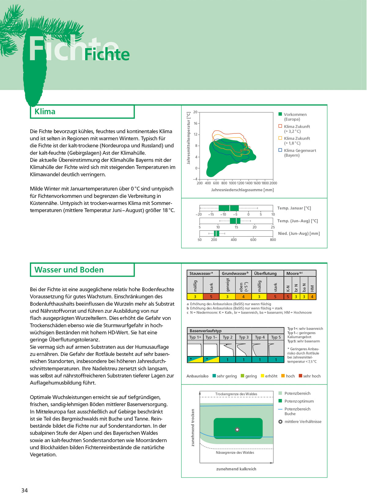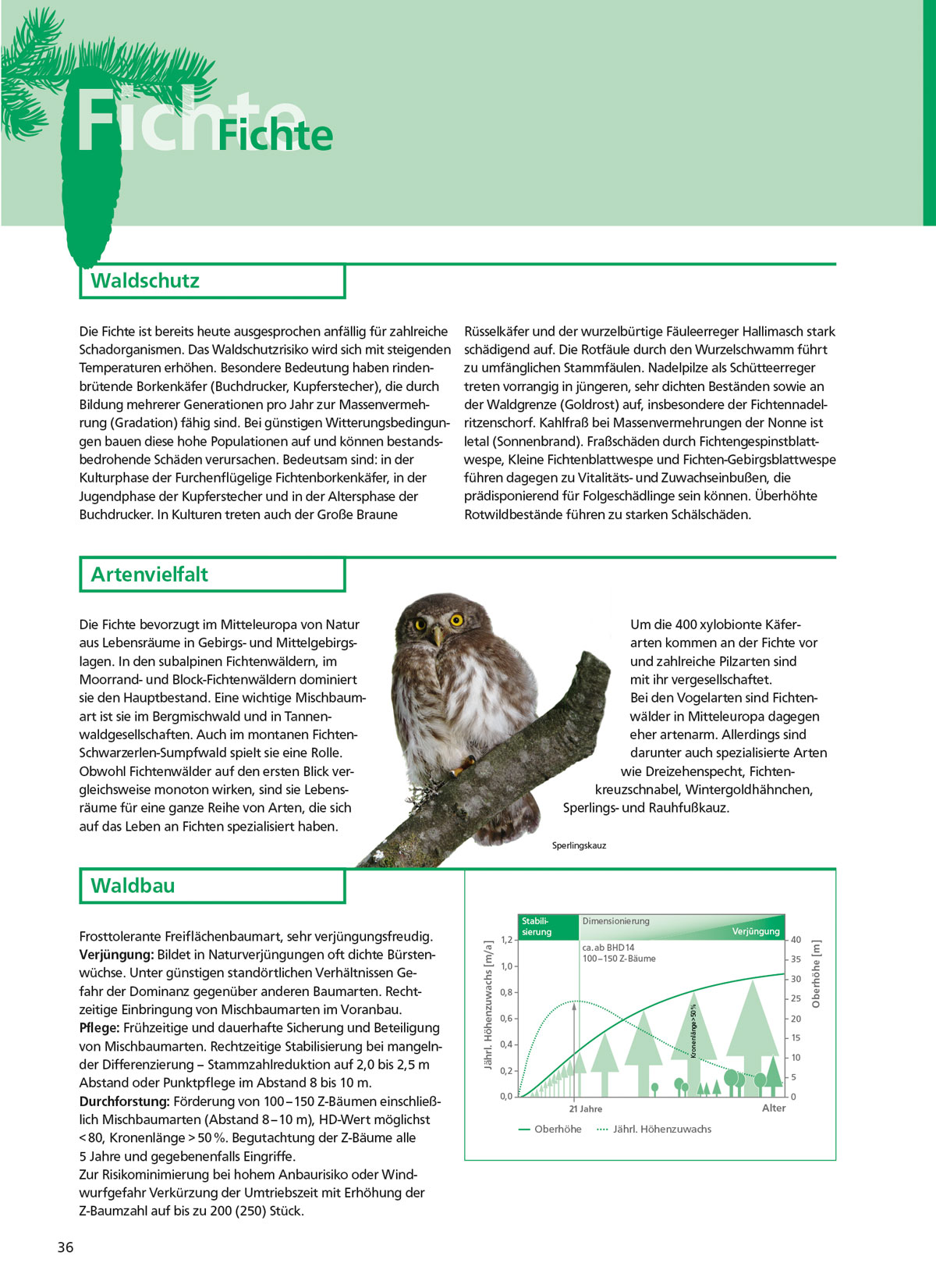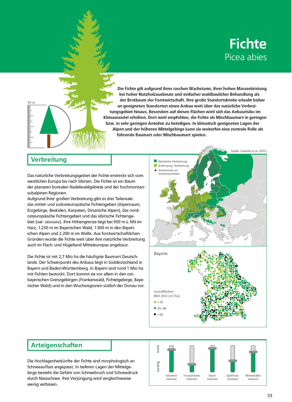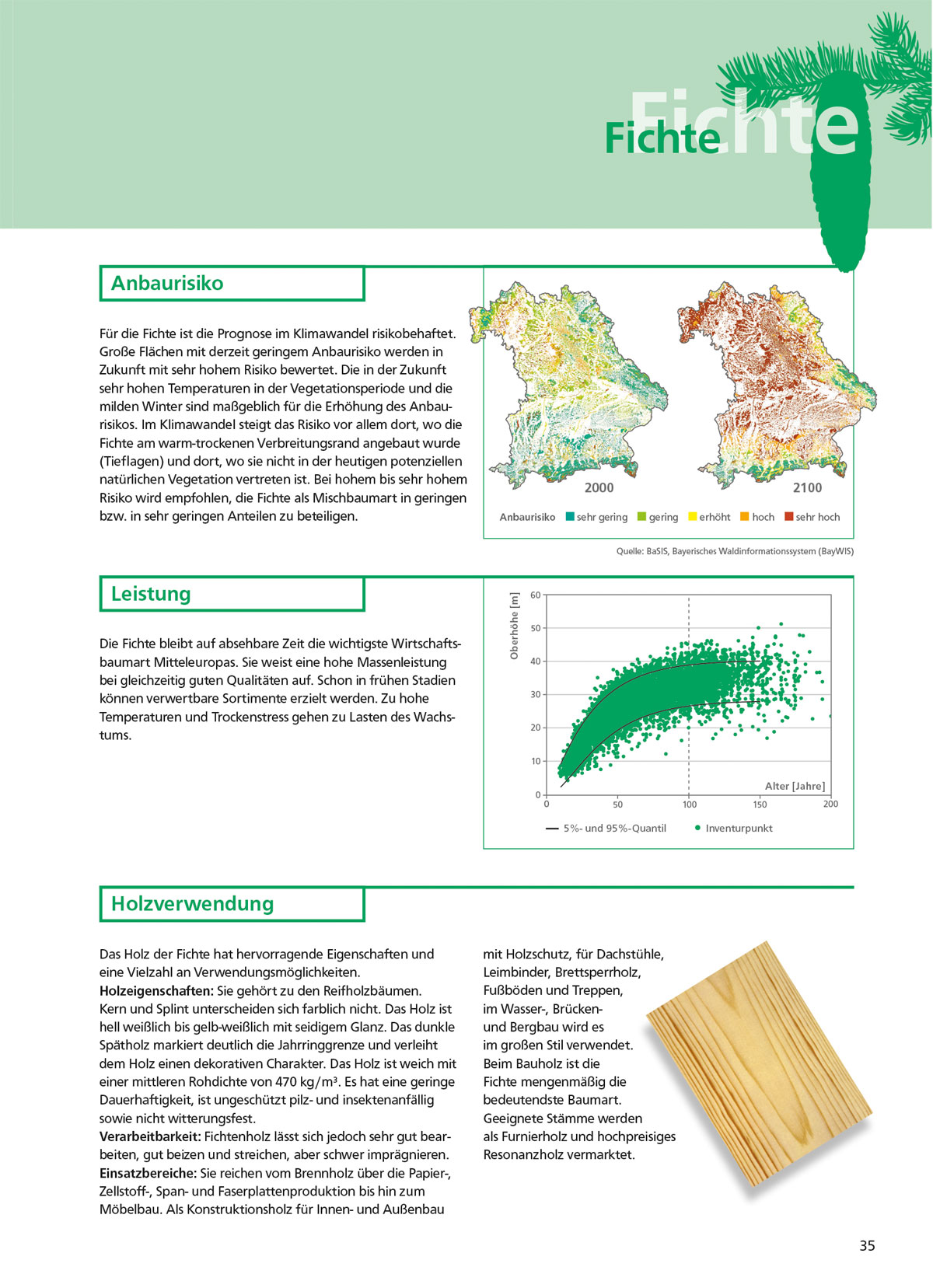 Abb. 3: Steckbrief Fichte. Jede Baumart wird auf vier "Steckbrief"-Seiten kompakt beschrieben.