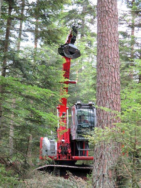 Abb. 2: Der Elliator bei der Kurzholzbringung: Wendigkeit und schonende Fortbewegung in dichten und nassen Bewaldungen sowie im Moor.