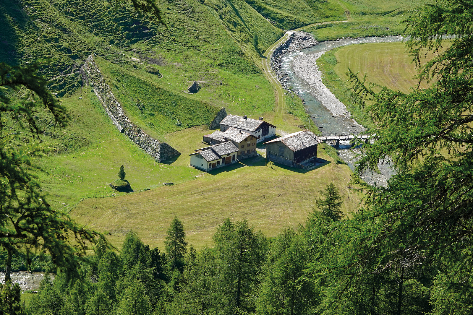 Abb. 1. Wiesen und Weiden auf der einen Talseite und Wäldern voller alter Lärchen und Arven auf der gegenüberliegenden Talseite prägen die Landschaft des Averser Hochtals. Foto: Susan Lock (WSL)