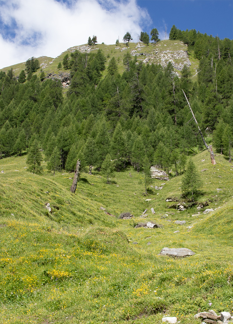 Ende des 13. oder in der ersten Hälfte des 14. Jahrhunderts besiedelten die Walser das Hochtal des Avers, im Kanton Graubünden in der Schweiz. Die Vieh- und Milchwirtschaft sowie die Nähe zu den oberitalienischen Viehmärkten über die Alpen (Madriserberg) prägten die Landschaft. Die nach Südwesten hin orientierte Flanke des Obertales wurde im Zuge der mittelalterlichen Landnahme für die Gewinnung von Weideland und die Errichtung von Wohnhäusern und Ställen gerodet und ist heute weitgehend waldfrei (Abb. 1).