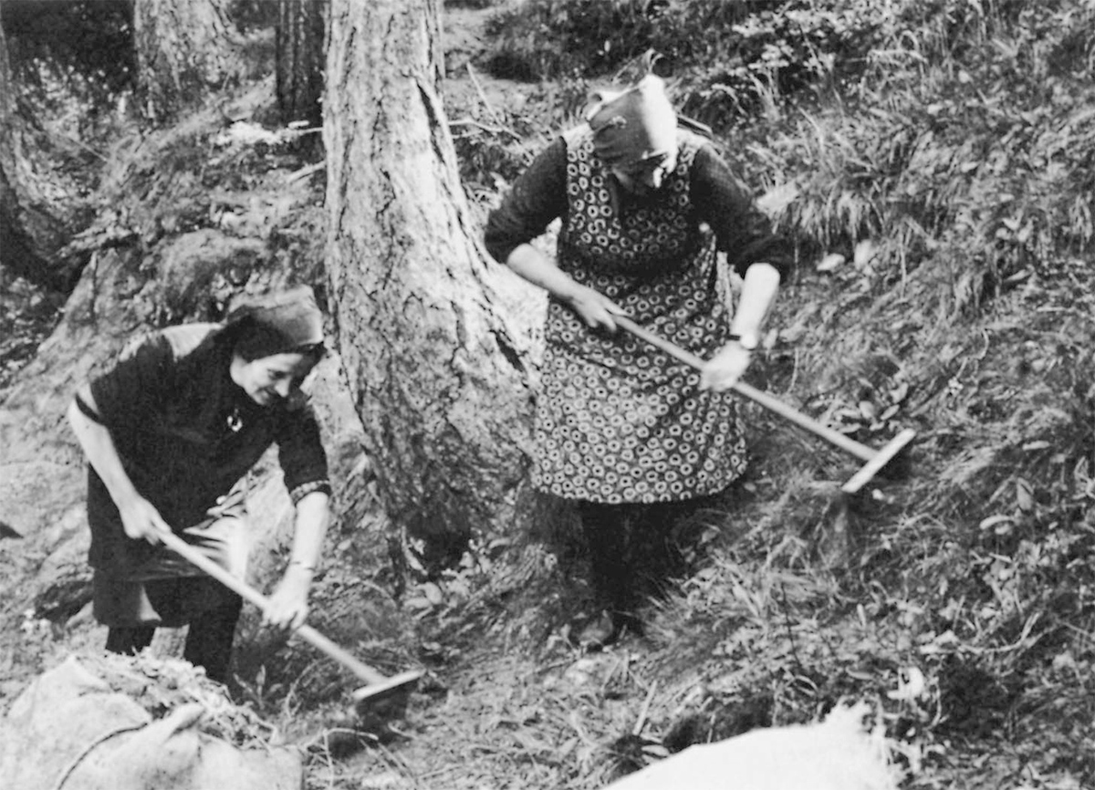 Neben der Verwendung im Stall trug Nadel- und Laubstreue auf Heuwiesen und Kartoffeläckern zur Dungbildung bei. - Bettlaub