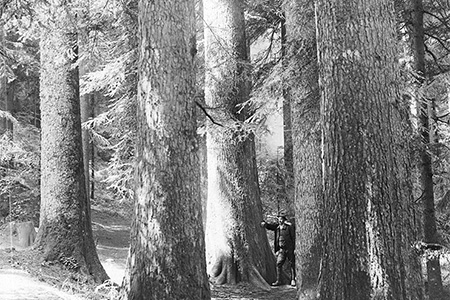 Hinter dem Campingplatz von Sur En steht die Talstation der Valtellina-Seilbahn. Sie liegt auf 1124 m ü. M. zwischen hoch aufragenden Fichten und Föhren. Sanft, beinahe liebevoll, wie auf die Schulter eines guten Freundes, tätschelt Mario Riatsch, Revierförster der Administraziun forestala Sent, auf das rostige Laufrad der Seilbahn und sagt: "Diese Bahn war ein geniales Transportmittel. Ausser dem Rauch der Bremsklötze und dem Zigarrenrauch des Maschinisten konnte sie völlig CO2-neutral betrieben werden. Zudem ist sie robust, resistent gegen Regen und Schnee und auch heute noch funktioniert sie tadellos."