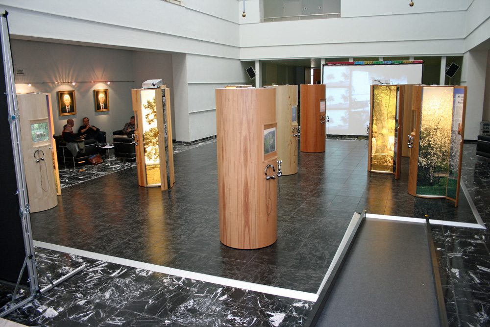 Der Ausstellung liegt ein mehrdimensionales Konzept zugrunde, das alle Sinne anspricht. Der Besucher "wandelt" gleichsam durch einen Ausstellungs"wald" aus zehn Multimedia-Säulen mit baumartenspezifischen Informationen (präsentiert werden Eiche, Buche, Erle, Birke, Pappel, Ahorn, Kirsche, Fichte, Kiefer und Douglasie).