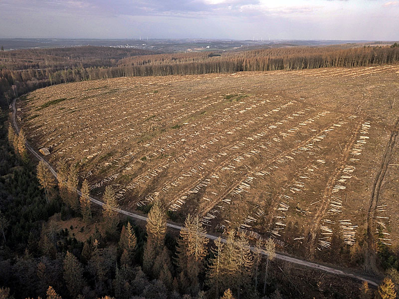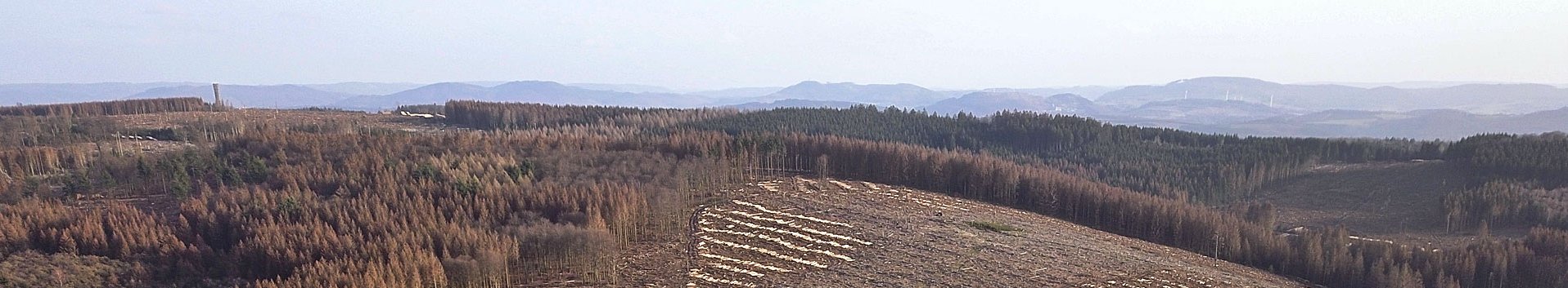 Abb. 1: Waldschaden in Warstein 2021: Forstpolitisch sollte alles getan werden, damit den Forstbetrieben nach den bereits eingetretenen Substanzverlusten wirtschaftliche Perspektiven erhalten bleiben – sollen sie nicht in Agonie verfallen. Foto: E. Rüther und C. Hentschel