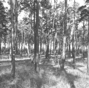 Abb. 1: Kiefern im Alter von 92 Jahren (Versuchsfläche Peitz 104). Foto: Niefnecker, 1989